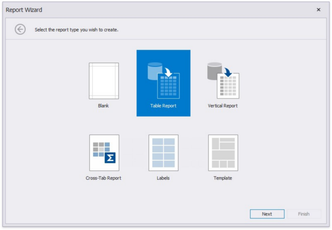 Creates a new blank report that is not bound to a data source. Choose this option to design your report without using the wizard.